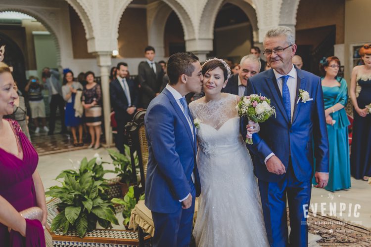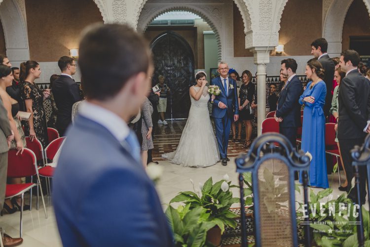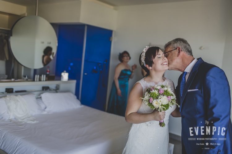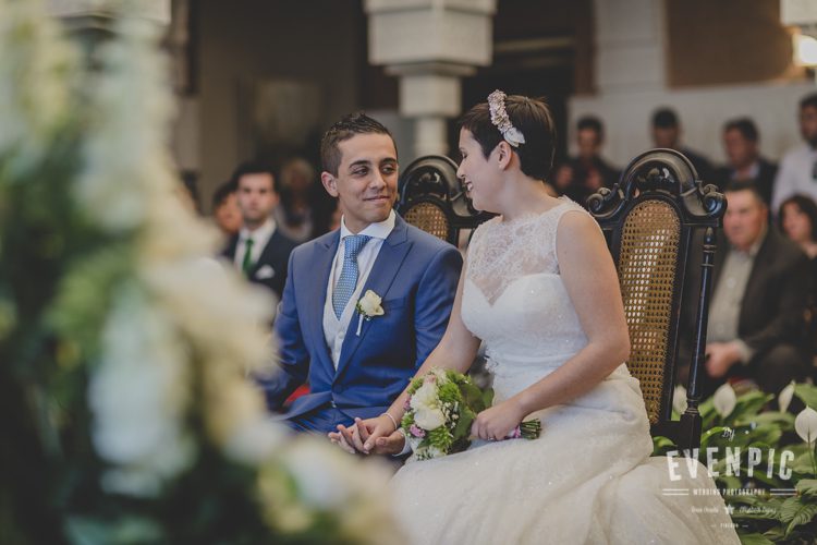 Miradas que sin decir una sola palabra lo dicen todo. Nosotros como Fotógrafos de bodas con muchas bodas a nuestra espalda seguimos considerando que este momento justo es sin duda uno de los momentos que los novios siempre recordaran del día de su boda, ya que es el punto de inflexión a partir del cuál ya viene todo.