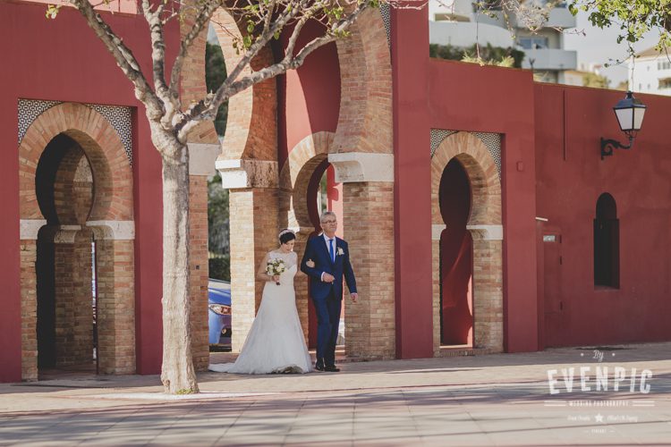 El lugar elegido para la ceremonia civil fue el Castillo BilBil de Benalmadena, sin duda uno de los lugares oficiales más demandados en la costa del Sol para realizar bodas civiles con trámite legal.