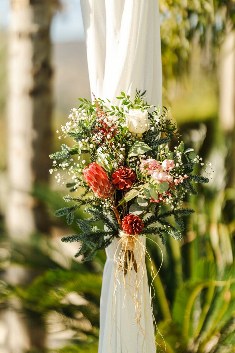 El sonido suave de la naturaleza, los colores delicados de la temporada y la decoración escogida especialmente para ellos crearon una atmósfera íntima y elegante. Fue un momento que parecía detenido en el tiempo, perfecto para ser recordado en cada imagen.