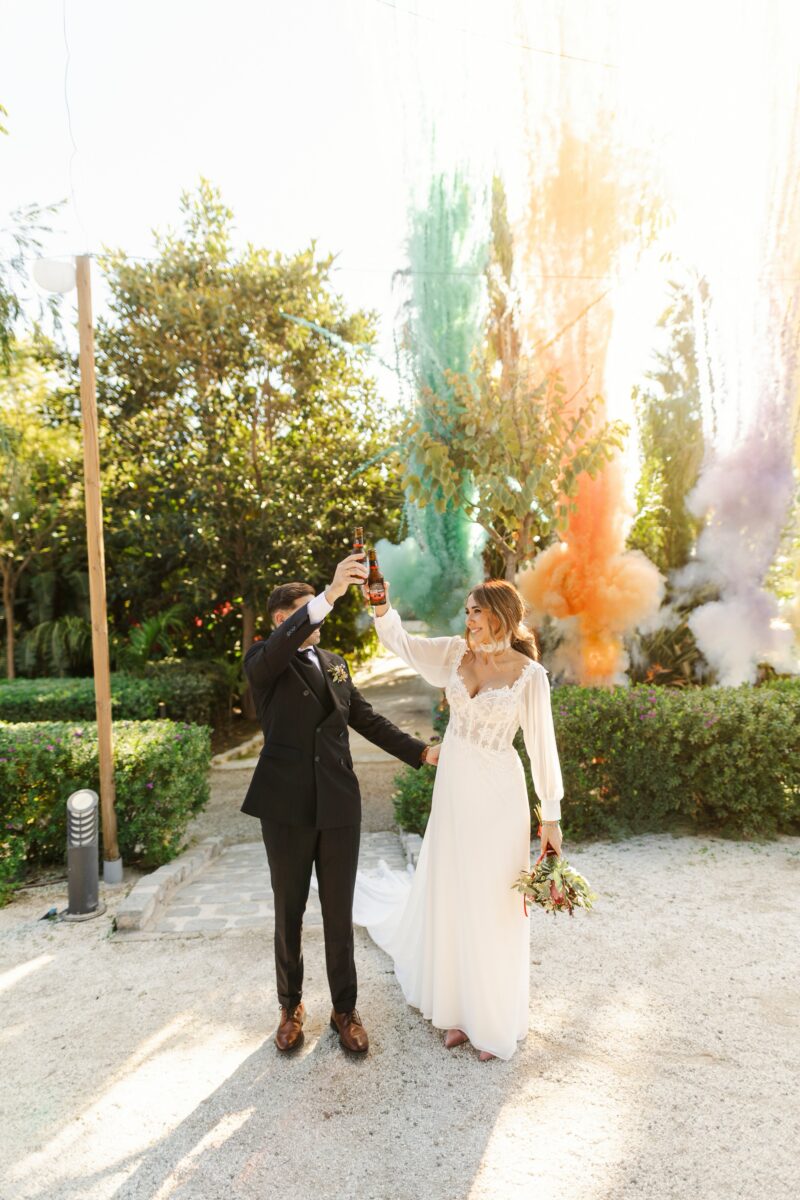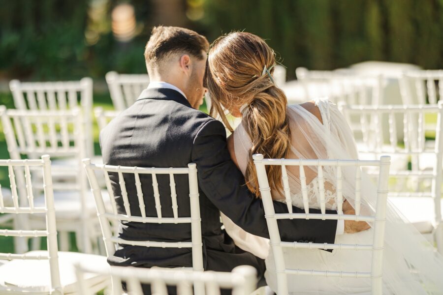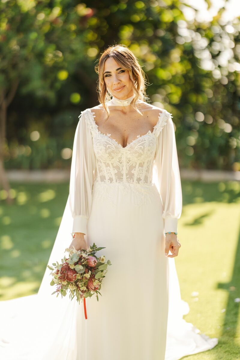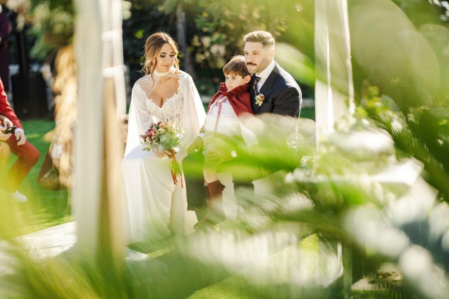 La ceremonia en Finca Botania fue uno de los momentos más emotivos del día. Rodeados de familiares y amigos, intercambiaron sus votos bajo el cielo tranquilo del invierno malagueño. Las miradas, las sonrisas y cada gesto reflejaron la esencia de su amor.