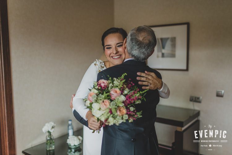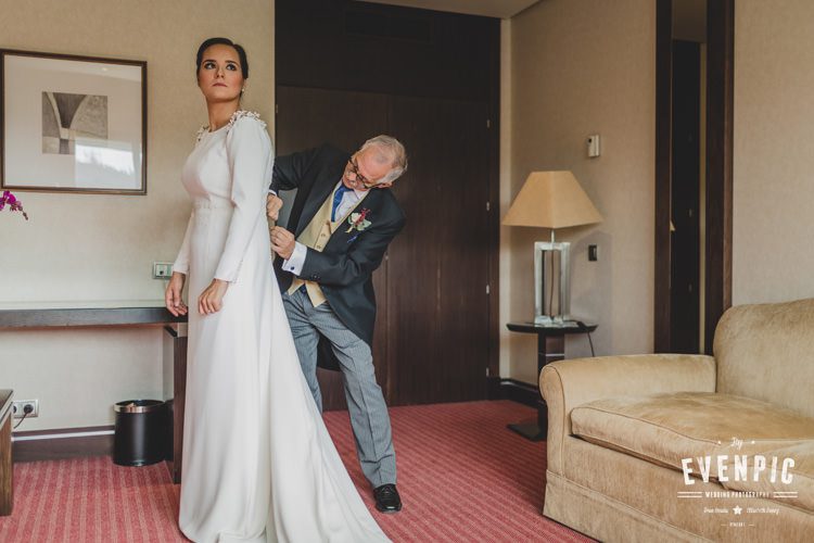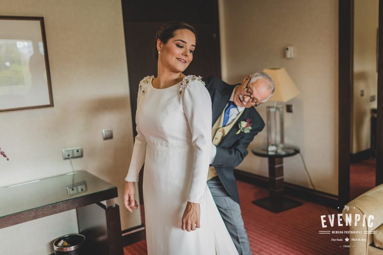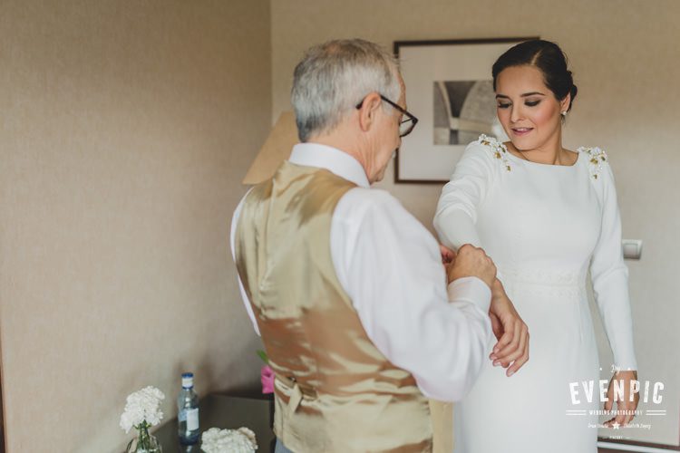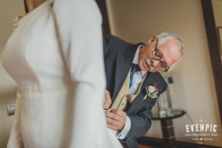 Los arreglos de Nelida fueron solo con su padre y me personalmente me gusto mucho esa complicidad que tenían ambos en uno de los momentos más importantes de la vida de ambos. Estamos más acostumbrados a que a la novia le ayude la madre por eso cuando en esta ocasión fue su padre el que la ayudó a terminar de vestirse nos encantó.