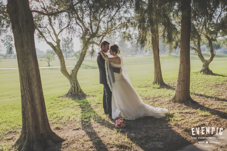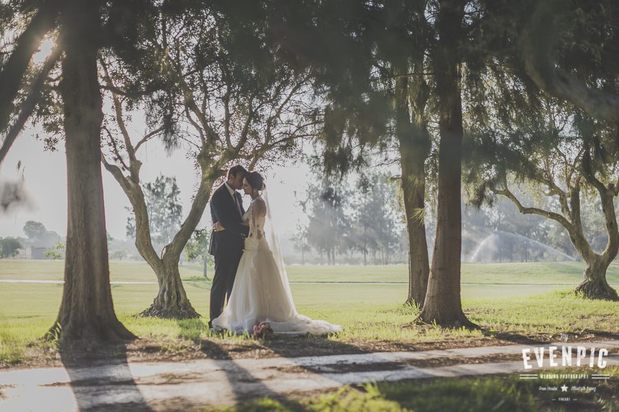 Los exteriores los realizamos como otras veces en un campo de golf para poder tener esas fotos de pareja que en una boda no pueden faltar y que en localizaciones como está consiguen un extra de belleza en cada uno de los rincones por los que pasamos. El día no pudo acabar de mejor manera al ser La casilla de Maera de Churriana Málaga la Finca elegida para la cena al aire libre de esta boda.