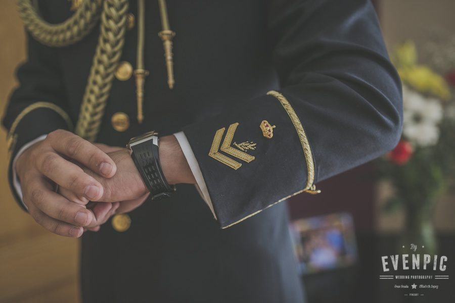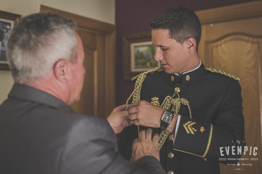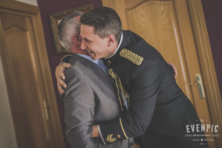 El traje del novio, fue el oficil del cuerpo de policía, con la salvedad de unas insignias en los puños, éste se lo hicieron a medida en una sastrería de San fernando. Fue toda una sorpresa para la familia de Rocío (la novia) y para ella misma, que no sabia nada y a la que los amigos de él le decían que iba a ir vestido el novio con un traje de colores muy llamativos, estaban todos compinchados para que fuera una verdadera sorpresa. El novio, Carlos, estaba muy tranquilo en su casa, a diferencia de Rocío, que le sobrepasaban los nervios y de vez en cuando se apoderaban de ella y se echaba a llorar, algo muy normal porque son muchos los dias de estres previos a la boda y ese dia los sentimientos estan a flor de piel.
